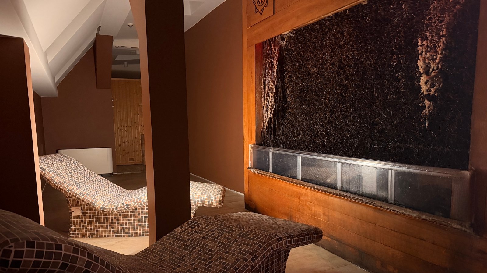 Die trockene finnische Sauna in der Alhambra ist mit einem ausgezeichneten Steinofen mit der Möglichkeit der Aromatherapie und der Erhöhung der Luftfeuchtigkeit ausgestattet. Sie ermöglicht auch eine Farbtherapie.
